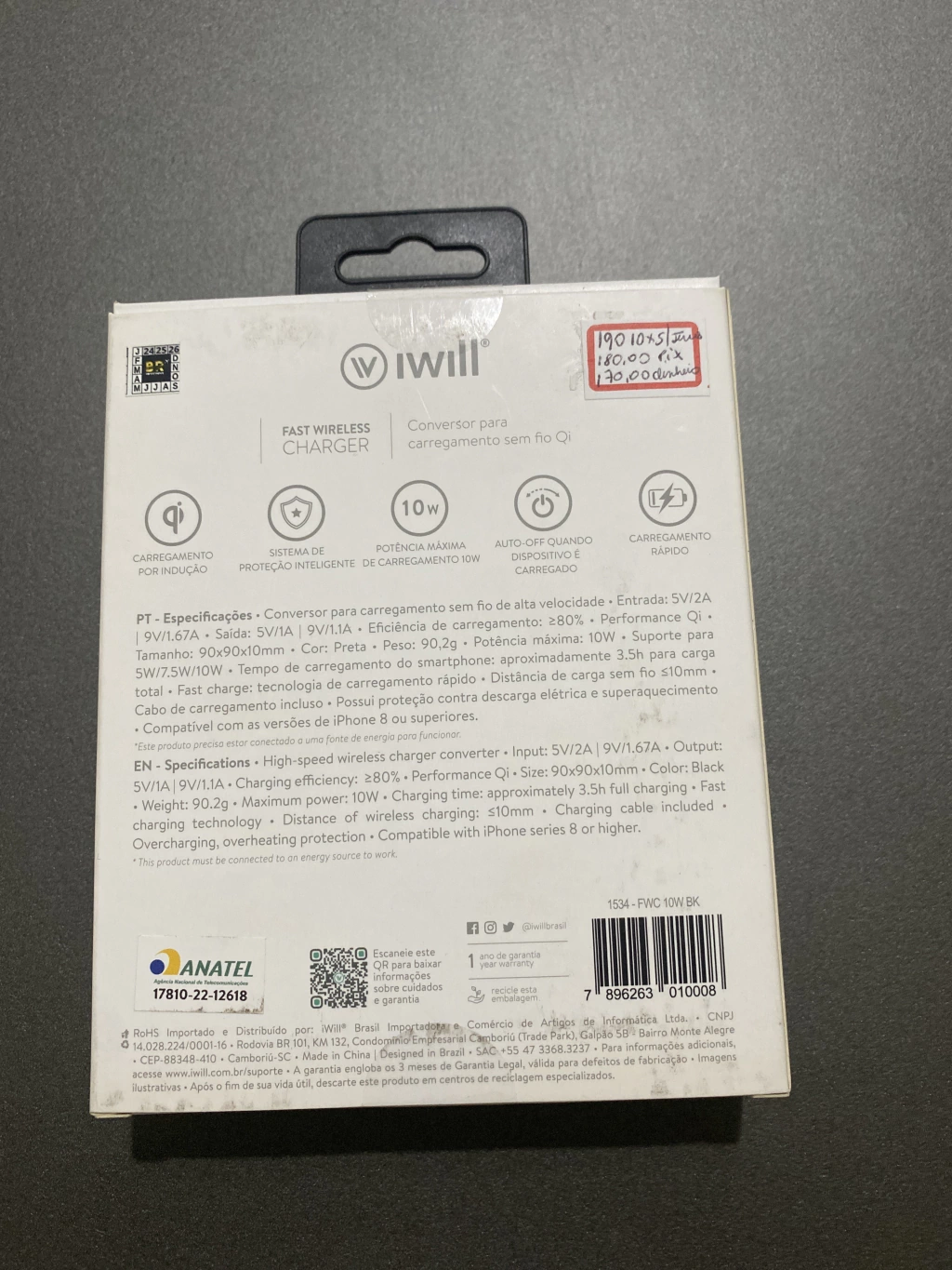 Conversor para carregamento sem fio Qi FAST WIRELESS CHARGER 10W